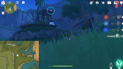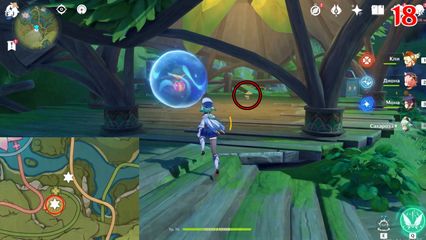 Попросите помощи у Капельки, чтобы она призвала ветряную мельницу. Ударьте по ней Анемо атакой и взлетите.