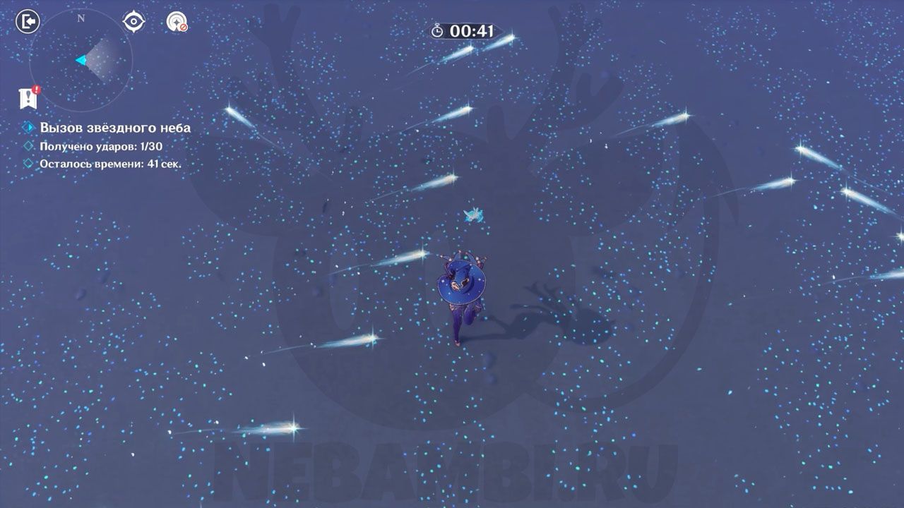 На испытании с вызовом звездного неба вам необходимо уклоняться от звезд определенное время. За все испытание вы можете получить только 30 ударов, если получите больше, то испытание будет провалено.