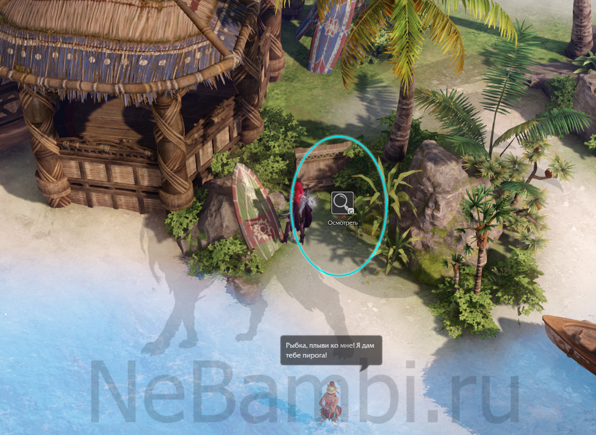 Нужно высадиться с лодки в этом месте: